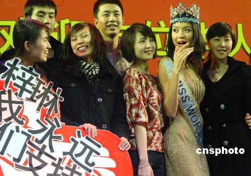 12月20日晚,首位奪得世界小姐桂冠的中國佳麗張梓琳從英國回到北京,中國新絲路時(shí)尚機(jī)構(gòu)舉行了盛大歡迎會。圖為在歡迎會上世姐張梓琳興高采烈與朋友歡聚。張梓琳在三亞參加第57屆世界小姐總決賽奪冠后,隨世姐機(jī)構(gòu)赴英國參加了一系列慈善活動(dòng)和新聞會。