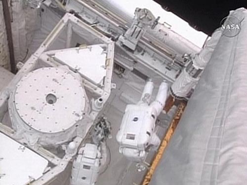 美國(guó)國(guó)家航空航天局5月15日發(fā)布的照片表現(xiàn),“亞特蘭蒂斯”號(hào)航天飛機(jī)宇航員邁克·馬西米諾和邁克·古德進(jìn)行太空行走。在15日的太空行走中,兩名宇航員將為哈勃望遠(yuǎn)鏡更換電池、陀螺儀等設(shè)備。“亞特蘭蒂斯”號(hào)航天飛機(jī)于11日發(fā)射升空,機(jī)上的宇航員將對(duì)哈勃望遠(yuǎn)鏡進(jìn)行最后一次維護(hù)。
