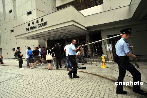 已故香港華懋集團(tuán)主席龔如心的千億遺產(chǎn)爭(zhēng)奪案進(jìn)入高潮,案中焦點(diǎn)人物、聲稱(chēng)持有龔如心“二00六年遺囑”的陳振聰終于上庭作供。連日來(lái),有媒體于凌晨時(shí)份已在高等法院門(mén)外排隊(duì)領(lǐng)取采訪(fǎng)證,而警方亦將鐵馬把高院門(mén)前分隔兩邊,方便記者采訪(fǎng)及律師證人等出入。中新社發(fā) 譚達(dá)明 攝