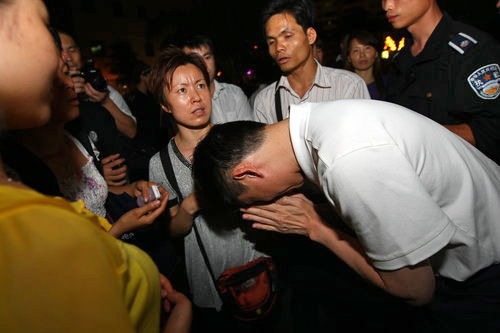 附近銀豐花園酒店的大堂主任曾先生說:“女的(指陳紅梅)一開始撒潑,執(zhí)法人員也拿她沒辦法,后來幾名執(zhí)法人員才沖上去打另一名男子(指于小龍)!备心繐粽叻Q,動粗的執(zhí)法人員因為耐何不了陳紅梅,才拿于小龍出氣。