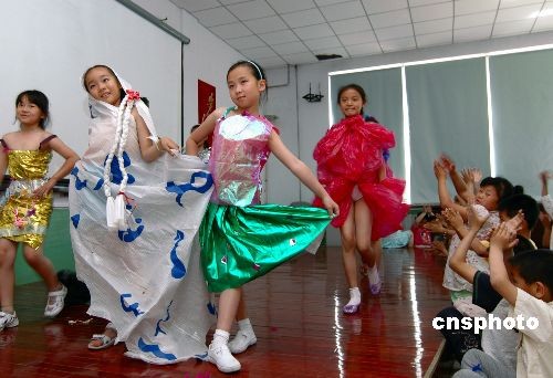 6月2日,遼寧省錦州市凌河區(qū)育英小學(xué)迎世界環(huán)境日開(kāi)展“兒童時(shí)裝秀警示禁塑”活動(dòng),小學(xué)生自己動(dòng)手設(shè)計(jì)一件由廢棄塑料制作的“時(shí)裝”,并親自進(jìn)行時(shí)裝表演,警示人們自覺(jué)禁塑,保護(hù)環(huán)境,從小樹(shù)立環(huán)保意識(shí)。中新社發(fā) 李鐵成 攝