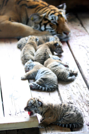 6月1日,黑龍江東北虎林園傳出喜訊,一只8歲東北虎一胎竟然產(chǎn)下了6只小虎崽,并且全部成活,這在世界上也十分罕見。預(yù)計虎寶寶將在3個月后與游客見面。