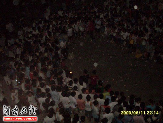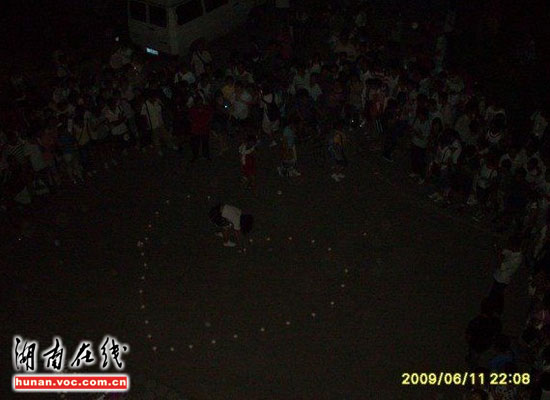 圖片時(shí)間憲攝拍攝于6月11日,發(fā)帖網(wǎng)友“D222”稱,晚上十點(diǎn)左右,山東某高校一男生宿舍樓外,一名女生用蠟燭擺成兩個(gè)串在一起的心型圖案,向該樓一名男生示愛。當(dāng)時(shí)正是下晚自習(xí)時(shí)間,這一大膽舉動(dòng)吸引了上千人圍觀!按伺允贾两K神情淡定,慢慢的用蠟燭擺好心形,并不時(shí)地向男宿舍樓上瞻望,還大聲喊男生的名字。樓下樓上的起哄聲、喝彩聲此起彼伏。”網(wǎng)友“D222”在帖子里這樣描述。據(jù)知情網(wǎng)友透露,男生自始至終都沒(méi)有露面。
