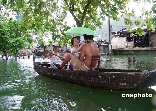 7月6日,受廣西上游普降暴雨影響,西江廣東境內(nèi)封開(kāi)縣江口水位急速上漲,到下午4時(shí)止,封開(kāi)縣城江口水位達(dá)到19.32米,超出警戒線2.2米,西江水已淹入江口鎮(zhèn)部分地區(qū),并仍以6厘米/小時(shí)的速度上漲,肇慶高要水文站稱,預(yù)計(jì)7日傍晚將迎來(lái)今年西江首個(gè)洪峰,西江水位將超過(guò)9米。目前西江肇慶段沿線正嚴(yán)陣以待備戰(zhàn)洪災(zāi)。中新社發(fā) 黃耀輝 攝