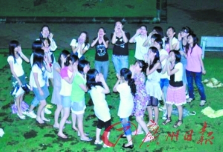 6月26日晚11時,華師05級經(jīng)濟(jì)學(xué)專業(yè)的20多位女同學(xué)來到該班男生所在的3棟宿舍樓下,她們大方地喊出“05級經(jīng)濟(jì)學(xué)男生,我們愛你!”,深情演唱《月亮代表我的心》。