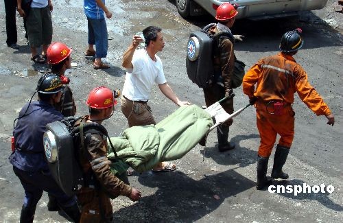 貴州晴隆新橋煤礦“6.17”透水事故在全體搶險(xiǎn)救援人員的艱苦努力、日夜奮戰(zhàn)下,歷經(jīng)25天、604小時(shí)的搶險(xiǎn)救援,取得突破性進(jìn)展,2009年7月12日12時(shí),在礦井上山巷與平巷交叉處成功營救出王圈杰、王礦偉、趙衛(wèi)星3名被困礦工,他們均為河南汝陽人,營救出井時(shí),意識(shí)較清醒,三人創(chuàng)造了604小時(shí)的生命奇跡,在場的全體搶險(xiǎn)救援人員都為他們頑強(qiáng)的生命所感動(dòng)。目前,救援指揮部醫(yī)護(hù)人員正在對(duì)他們進(jìn)行身體檢查,并采取相應(yīng)的醫(yī)療措施對(duì)他們進(jìn)行醫(yī)療救護(hù),據(jù)觀察,生命體征基本平穩(wěn)。同時(shí),搶險(xiǎn)救援人員正在井下緊急搜救其他被困礦工。中新社發(fā) 彭年 攝