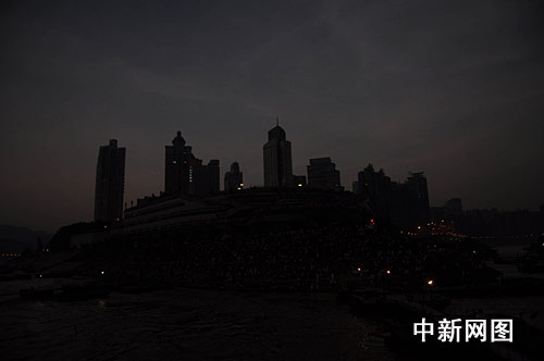 9時12分左右,食既開始,日全食進入全食階段。記者在重慶朝天門碼頭看到,約1分鐘時間白晝迅速變成黑夜,路上行駛的汽車紛紛打開車燈減緩車速,廣場上的路燈也逐次亮起。