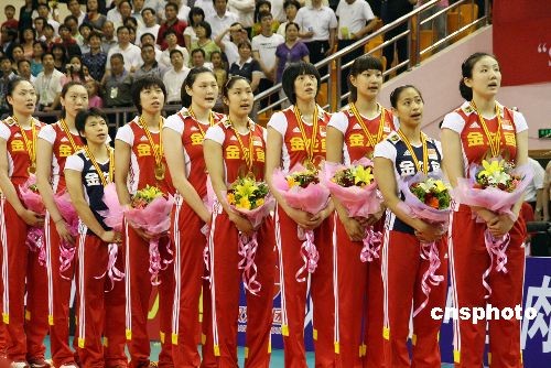 5月31日,2009年中國(guó)國(guó)際女排精英賽(漯河站)在河南省漯河市體育館展開(kāi)最后一場(chǎng)爭(zhēng)奪,由東道主中國(guó)女排對(duì)壘美洲勁旅古巴女排,最終“小諸葛”蔡斌率領(lǐng)的中國(guó)隊(duì)3-0(25-17、25-21、25-15)狂勝對(duì)手,“蔡家軍”以三戰(zhàn)全勝的驕人戰(zhàn)績(jī)奪得首個(gè)冠軍。中新社發(fā) 李慧宇 攝