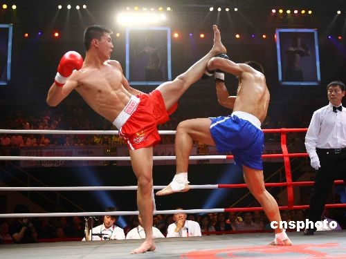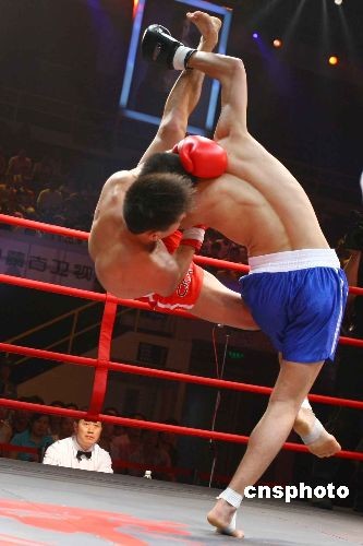 6月2日晚,規(guī)模最大、競技水平最高的武術(shù)散打賽事——首屆中國武術(shù)散打超級聯(lián)賽(CKA)在北京大學(xué)生體育館拉開戰(zhàn)幕,賽事匯聚到由目前中國頂尖散打選手組成的六支代表隊爭奪總冠軍,獎金總額高達(dá)三百萬元。本屆聯(lián)賽選擇了北京、河南、山東、江蘇、安徽、廣東六個國內(nèi)散打運動開展得較為全面的地區(qū)的選手,分別組成代表各地區(qū)的隊伍,依照體重分為五個級別,最終決出國家級散打團(tuán)體最高榮譽和個人最高榮譽。中新社發(fā) 富田 攝