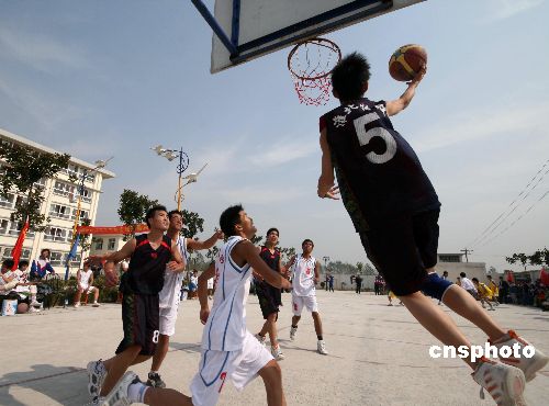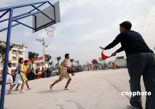 10月20日,安徽省皖北地區(qū)特教學校首屆籃球賽在蒙城縣特殊教育學校開幕,來自皖北地區(qū)14所特殊教育學校的50多名聾啞學生,參加了三人制籃球比賽。聾啞學生在老師和裁判的手語指導下,用手語和眼神投籃、拼搶的頑強精神博得人們的陣陣掌聲。中新社發(fā) 胡衛(wèi)國 攝