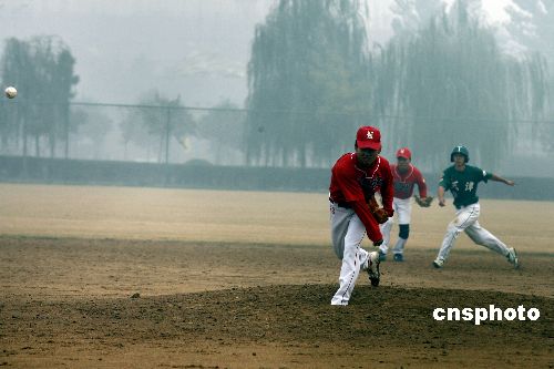 十月二十四日,二零零七全國棒球錦標(biāo)賽進(jìn)入第五天,河南四季胖哥隊(duì)對(duì)天津雄獅隊(duì)。天津隊(duì)?wèi){借豐富的實(shí)戰(zhàn)經(jīng)驗(yàn)迅速在比賽中占據(jù)主動(dòng),最終十比三勝河南隊(duì)。中新社發(fā) 慎重 攝