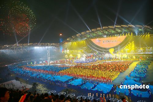 中國(guó)第六屆全國(guó)城市運(yùn)動(dòng)會(huì)在湖北武漢體育中心開幕。本屆城運(yùn)會(huì)共設(shè)立24個(gè)比賽大項(xiàng)、27個(gè)分項(xiàng)、288個(gè)小項(xiàng),參賽運(yùn)動(dòng)員達(dá)6351人,為歷屆城運(yùn)會(huì)之最。本屆城運(yùn)會(huì)將于11月3日閉幕。據(jù)悉,城運(yùn)會(huì)是中國(guó)每4年舉辦一次的全國(guó)大型綜合性體育盛會(huì)。中新社發(fā) 宋建春 攝