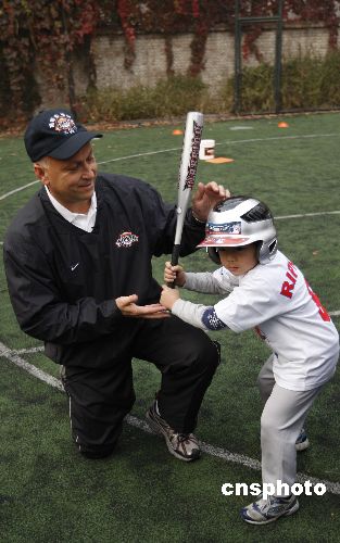 10月30日,入選棒球名人堂的前美國職業(yè)棒球運(yùn)動員卡爾·瑞普金在北京西單小學(xué)教小學(xué)生打棒球。這是他以美國國務(wù)院派遣的美國公共外交特使的身份進(jìn)行的首次出訪。瑞普金將訪問北京、上海和廣州,在這三個城市中,瑞普金將與青少年進(jìn)行接觸,相互進(jìn)行文化交流,同時為更多的新手講解棒球運(yùn)動?·瑞普金是棒球運(yùn)動有史以來空前的鐵人紀(jì)錄保持者,也是美國棒球名人堂成員之一。他是棒球史上僅有的取得400次本壘打和擊中3000次的八位知名球員之一。2007年7月29日,他以史上最高得票數(shù)入選美國棒球名人堂。 中新社發(fā) 杜洋 攝