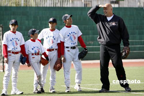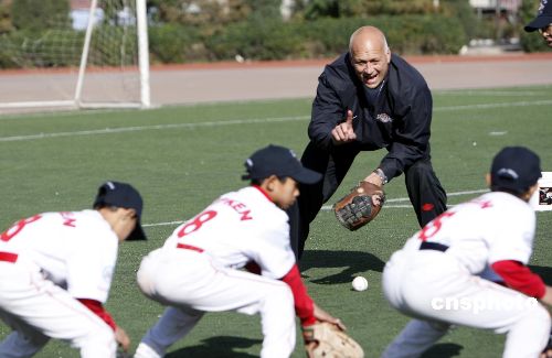 10月31,入選棒球名人堂的前美國(guó)職業(yè)棒球運(yùn)動(dòng)員卡爾·瑞普金在北京大成學(xué)校教學(xué)生打棒球。這是他以美國(guó)國(guó)務(wù)院派遣的美國(guó)公共外交特使的身份進(jìn)行的首次出訪。瑞普金將訪問北京、上海和廣州,在這三個(gè)城市中,瑞普金將與青少年進(jìn)行接觸,相互進(jìn)行文化交流,同時(shí)為更多的新手講解棒球運(yùn)動(dòng)。卡爾·瑞普金是棒球運(yùn)動(dòng)有史以來空前的鐵人紀(jì)錄保持者,也是美國(guó)棒球名人堂成員之一。他是棒球史上僅有的取得400次本壘打和擊中3000次的八位知名球員之一。2007年7月29日,他以史上最高得票數(shù)入選美國(guó)棒球名人堂。中新社發(fā) 杜洋 攝