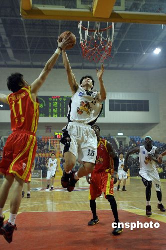 11月16日晚,在山西太原進(jìn)行的2007-2008賽季CBA聯(lián)賽第9輪角逐中,浙江廣廈隊(duì)以108:96客場(chǎng)戰(zhàn)勝山西中宇隊(duì)結(jié)束連敗,中宇隊(duì)則遭遇五連敗。根據(jù)賽程安排,山西中宇第10輪的對(duì)手將是浙江萬馬,而浙江廣廈將對(duì)陣北京金隅。中新社發(fā) 張?jiān)?攝