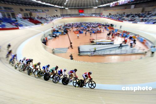 “好運(yùn)北京”國(guó)際自盟場(chǎng)地自行車世界杯賽12月8日繼續(xù)在2008北京奧運(yùn)會(huì)自行車賽場(chǎng)-老山自行車賽場(chǎng)舉行,為了爭(zhēng)奪北京奧運(yùn)會(huì)的入場(chǎng)券,世界各路好手幾乎全部云集競(jìng)逐。中新社發(fā) 任晨鳴 攝