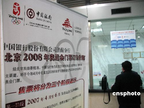 12月10日,濟(jì)南市民在中國銀行預(yù)定北京奧運(yùn)門票。據(jù)銀行工作人員介紹,由于這一次預(yù)定需要抽簽,因此沒有出現(xiàn)上一次的搶購情景,體育愛好者們心情平靜,一天下來僅有數(shù)十人預(yù)定。 中新社發(fā) 周青先 攝