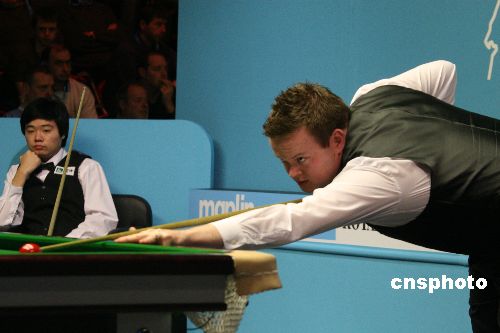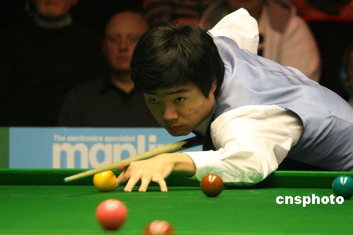 當(dāng)?shù)貢r間12月12日晚,中國斯諾克選手丁俊暉經(jīng)過十六局苦戰(zhàn),最終憾負目前世界排名第一的肖恩·墨菲,無緣英國錦標(biāo)賽四強。比賽非常激烈,兩人比分緊咬。中新社發(fā) 李鵬 攝