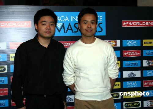 當(dāng)?shù)貢r間一月九日下午,中國“臺球神童”丁俊暉和香港名將傅家俊出現(xiàn)在倫敦唐人街,近距離和球迷切磋球技,推廣將在本月十三日開始的溫布利大師賽。中新社發(fā) 李鵬 攝