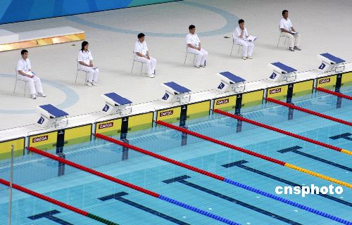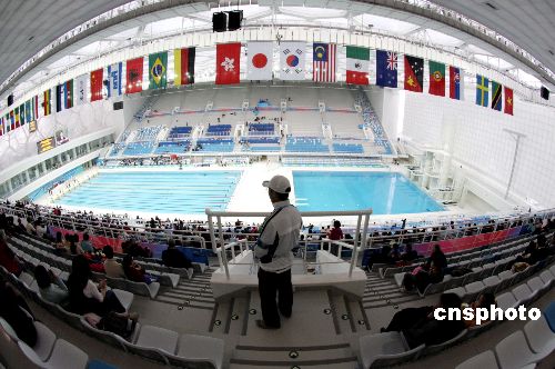 2月1日,“好運(yùn)北京”2008年中國(guó)游泳公開(kāi)賽首場(chǎng)決賽在“水立方”游泳館舉行。中新社發(fā) 吳芒子 攝