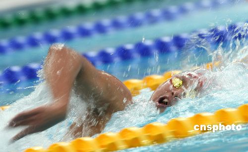 2月3日,“好運(yùn)北京”2008年中國(guó)游泳公開(kāi)賽在北京國(guó)家游泳中心“水立方”進(jìn)行了6個(gè)項(xiàng)目的決賽,在男子1500米自由泳決賽中,中國(guó)選手張琳以15分05秒57的成績(jī)輕松奪金。中新社發(fā) 盛佳鵬 攝