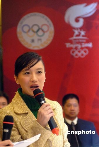 經(jīng)過千挑萬選,參加2008北京奧運圣火傳遞活動的一百二十名澳門火炬手已確定。二月十八日,澳門火炬手李菲在奧林匹克總部舉行的新聞發(fā)布會上首次亮相。五月三日,奧運圣火將傳至澳門,由一百二十名火炬手沿澳門二十六公里的路線完成火炬?zhèn)鬟f,交至中國三亞市。中新社發(fā) 史利 攝