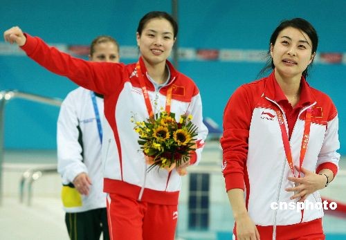 2月23日,“好運北京”國際泳聯(lián)第16屆跳水世界杯進(jìn)入第五日,在女子3米跳板決賽中,吳敏霞在最后一跳頂住壓力,發(fā)揮出色,以超越隊友郭晶晶3.60分的成績贏得金牌,這也是她獲得的第2枚跳水世界杯個人項目金牌,郭晶晶以387.75分的總分摘得銀牌,澳大利亞選手斯特拉頓(Sharleen Stratton)以250.79的總分摘得銅牌。中新社發(fā) 富田 攝