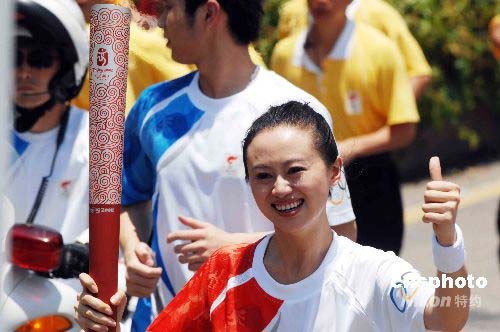 圖:戴菲菲傳遞深圳站奧運(yùn)火炬第三棒