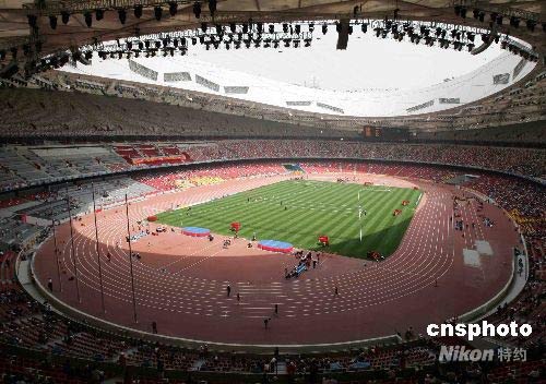 5月22日,“好運(yùn)北京”2008中國田徑公開賽在國家體育場“鳥巢”拉開帷幕。這是中國在全國哀悼日結(jié)束后舉辦的首項(xiàng)重大賽事,也是鳥巢首次全面開放進(jìn)行奧運(yùn)場館測試賽。中新社發(fā) 富田 攝
