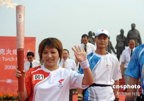 6月5日,奧運圣火開始湖南湘潭、韶山傳遞,舉重奧運冠軍楊霞傳遞首棒火炬。