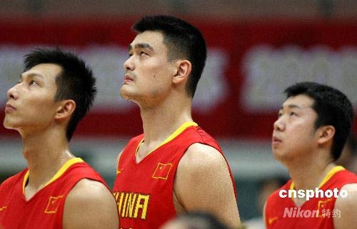 7月19日下午,中國男籃在杭州舉行的2008斯坦科維奇洲際杯籃球賽的比賽中以71比72負于北京奧運會同組對手非洲冠軍安哥拉隊。效力于NBA火箭隊的姚明(中)、NBA新澤西網隊的中國球星易建聯(lián)(左)、從NBA回國的王治郅是中國男籃的“三座大山”,他們在北京奧運會賽場上的發(fā)揮對中國隊的勝負舉足輕重。中新社發(fā) 任晨鳴 攝