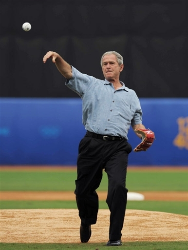 8月11日,美國總統(tǒng)布什現(xiàn)身五棵松棒球場(chǎng),親自上陣秀球技,并與美國棒球隊(duì)運(yùn)動(dòng)員交談并合影留念。從8月8日,布什相繼來到“鳥巢”觀看奧運(yùn)開幕式,“水立方”觀看游泳比賽,五棵松籃球館觀看籃球比賽,可稱得上是美國最大牌的超級(jí)體育迷。