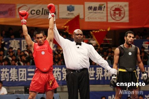 9月19日,“第四屆世界杯武術(shù)散打比賽”在黑龍江舉行。來(lái)自俄羅斯、伊朗、巴西、菲律賓、中國(guó)澳門(mén)等19個(gè)國(guó)家和地區(qū)的71名男女散打運(yùn)動(dòng)員參加比賽。中新社發(fā) 姚庭山 攝
