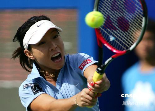 9月26日,2008年中國網(wǎng)球公開賽繼續(xù)進行。在下午結(jié)束的一場女單1/4決賽中,中國金花鄭潔經(jīng)過3小時苦戰(zhàn)以7-6(4)、2-6和6-4力克塞爾維亞美少女伊萬諾維奇,晉級4強。 中新社發(fā) 富田 攝