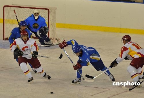 2月18日,大冬會(huì)各項(xiàng)比賽全面開(kāi)戰(zhàn)。中國(guó)男子冰球隊(duì)不敵哈薩克斯坦男子冰球隊(duì)0:10落敗,而女子冰球隊(duì)以5:3戰(zhàn)勝斯洛伐克女子冰球隊(duì)。中新社發(fā) 濱海之光 攝