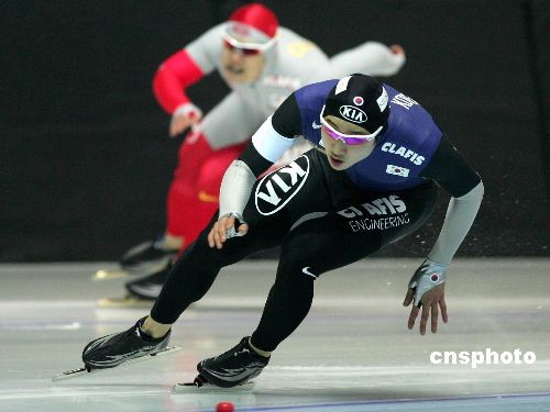 2月19日,世界大學(xué)生冬季運(yùn)動(dòng)會(huì)在結(jié)束女子首金爭(zhēng)奪后,男子500米速度滑冰的比賽也產(chǎn)生了金牌。韓國(guó)選手選手李康爽以兩輪69秒82的成績(jī)問(wèn)鼎冠軍,為韓國(guó)隊(duì)再添一金。中國(guó)隊(duì)賽前對(duì)金牌志在必得的于鳳桐落后0.05秒,屈居亞軍,銅牌則最終歸屬于韓國(guó)選手毛太范,成績(jī)?yōu)?0秒53。中新社發(fā) 富田 攝