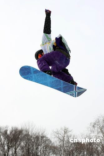 2月24日中午,在黑龍江哈爾濱舉行的大冬會比賽上,我國選手曾小燁、史萬成和徐德超在男子單板滑雪U池的預賽中順利過關,進入了決賽。中新社發(fā) 王韶驊 攝