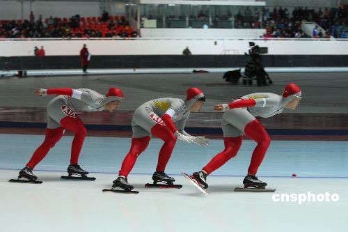 2月26日,大冬會(huì)速度滑冰女子團(tuán)體追逐賽,中國(guó)隊(duì)以3分07秒38獲得冠軍。中新社發(fā) 王忠言 攝