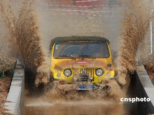 2009年4月29日,“景陽春杯”越野車王爭霸賽在發(fā)動機的咆哮聲中拉開帷幕。本次大賽的最大魅力在于極強的觀賞性和參與性,賽手需要通過越野賽道內(nèi)36組障礙,尤其需要突破場地內(nèi)極具粘性的泥地,是通常項目無法比擬的!熬瓣柎罕痹揭败囃鯛幇再,以宣傳賽事以及山東文化產(chǎn)業(yè)及旅游產(chǎn)業(yè)的繁榮景象為主題,全方位展示汽車文化的獨有魅力及無限的發(fā)展空間。“景陽春杯”越野車王爭霸賽,系山東省體育總局主辦, 安丘市人民政府、山東青云國際旅游度假區(qū)股份有限公司承辦的跨度為五個月的大型賽事。中新社發(fā) 王曉光 攝