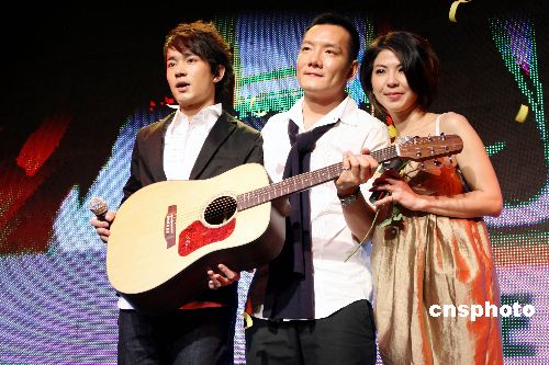 12月14日,許茹蕓《北緯66度》北京新聞發(fā)布會(huì)暨阿穆隆加盟種子記者會(huì)在北京舉行。經(jīng)過(guò)長(zhǎng)達(dá)3年的沉淀與生活的歷練,許茹蕓帶著歌迷們的牽掛重新回到大家身邊。在發(fā)布會(huì)現(xiàn)場(chǎng),阿穆隆手持獻(xiàn)花與許茹蕓合唱《男人女人》。一曲唱畢,種子音樂(lè)總經(jīng)理田定豐先生走上臺(tái)來(lái),贈(zèng)送阿穆隆一把精美的吉他,正式宣布阿穆隆簽約種子音樂(lè)。中新社發(fā) 袁方 攝
