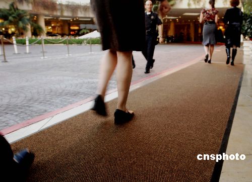 受邀的記者們走在沒有紅地毯和毫無好萊塢星光的便道上。