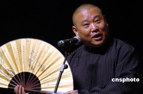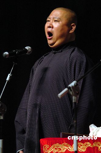 2008年1月13日晚,郭德綱率德云社在深圳體育館送上“德云社深圳新春相聲晚會”。郭德綱和于謙搭檔帶來多個新段子,其中《誰動了我的減肥茶》、《警察故事》、《文學(xué)家》等作品,大抖“連環(huán)包袱”,讓數(shù)千名觀眾大飽耳福。中新社發(fā) 吳峻 攝