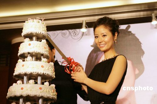 1月22日,華誼兄弟傳媒集團(tuán)為旗下藝人林心如舉辦名為“林心如十年有成記者會(huì)”。林心如身著有臺(tái)灣著名設(shè)計(jì)師陳季敏特別為其定制的禮服,世界知名珠寶“BVLGARI”寶格麗也特別由國外調(diào)來了精致的彩色珠寶烘托林心如的高貴氣質(zhì)。華誼兄弟總裁王中軍作為特別嘉賓親臨現(xiàn)場,他特別定制了一個(gè)十層的蛋糕送來給心如,寓意心如十年成就,而且還會(huì)層層高。中新社發(fā) 一可 攝