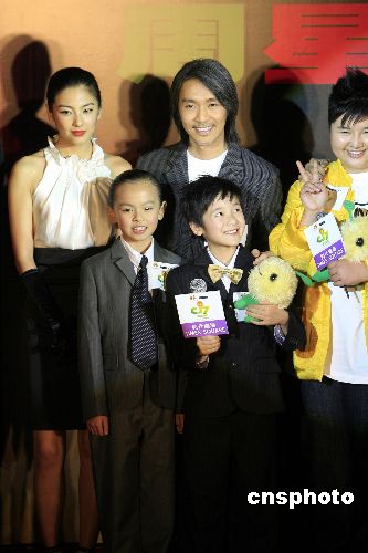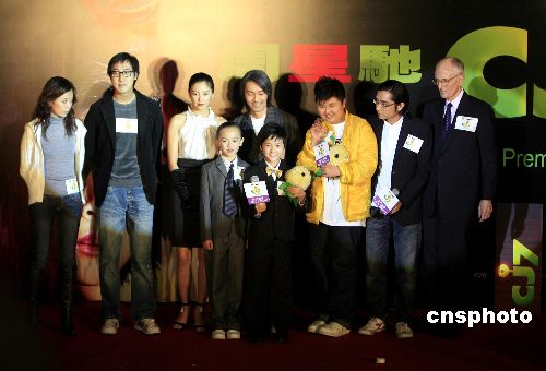 一月二十三日晚,周星馳身兼導(dǎo)演、編劇、演員,歷時(shí)三年打造的電影《長江七號》在香港舉行全球首映禮,特首曾蔭權(quán)夫婦等百位政界、商界、演藝界嘉賓出席觀看,支持香港創(chuàng)意工業(yè)。中新社發(fā) 王麗南 攝