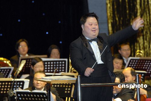 1月30日下午,“心靈之舟 情暖中原——2008安利新春慈善音樂會”在河南省人民大會堂上演。被音樂大師斯特恩譽(yù)為“創(chuàng)造藝術(shù)的指揮家”的智障青年舟舟,用手中的“魔棒”,感動了在場觀眾。中新社發(fā) 向明超 攝