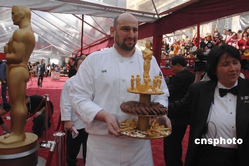 圖:奧斯卡頒獎在即 巧克力小金人亮相紅地毯