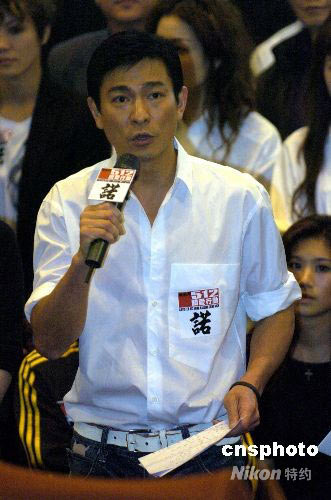 五月二十二日,“演藝界‘五·一二’關(guān)愛行動(dòng)”在香港舉行新聞發(fā)布會(huì),召集人劉德華出席并承諾將會(huì)出全力為四川地震受災(zāi)群眾重建家園。中新社發(fā) 譚達(dá)明 攝