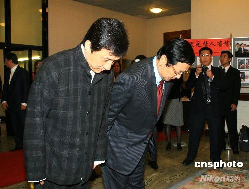 成龍在中國駐英使館吊唁四川地震遇難者