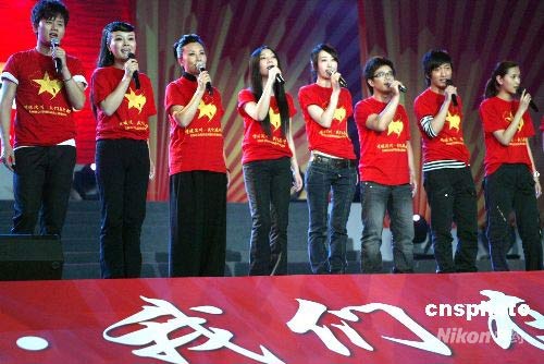5月25日晚,由13家國家一級社會組織共同主辦的“情暖汶川·我們在行動(dòng)——全國社會組織抗震救災(zāi)募捐義演”在北京首都體育館舉行,來自社會各界的1萬余名觀眾參加了此次募捐活動(dòng)。現(xiàn)場籌得款物將通過中華慈善總會全部捐給地震災(zāi)區(qū)。中新社發(fā) 趙雋 攝