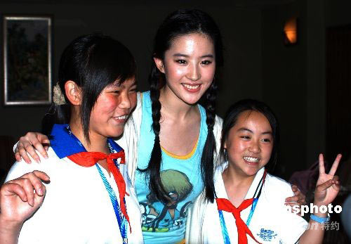 圖:影星劉亦菲赴三亞看望地震災(zāi)區(qū)兒童